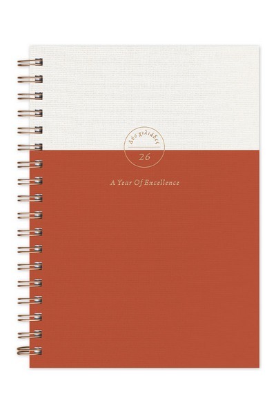 Ημερολόγιο ημερήσιο 2026 με σύγχρονο σχεδιασμό, μήνυμα παρακίνησης, ανάγλυφη υφή, μπρονζέ θερμοτυπία και spiral βιβλιοδσία με σκληρό κάλυμμα. Περιλαμβάνει φάκελο εγγράφων με καρτοθήκες